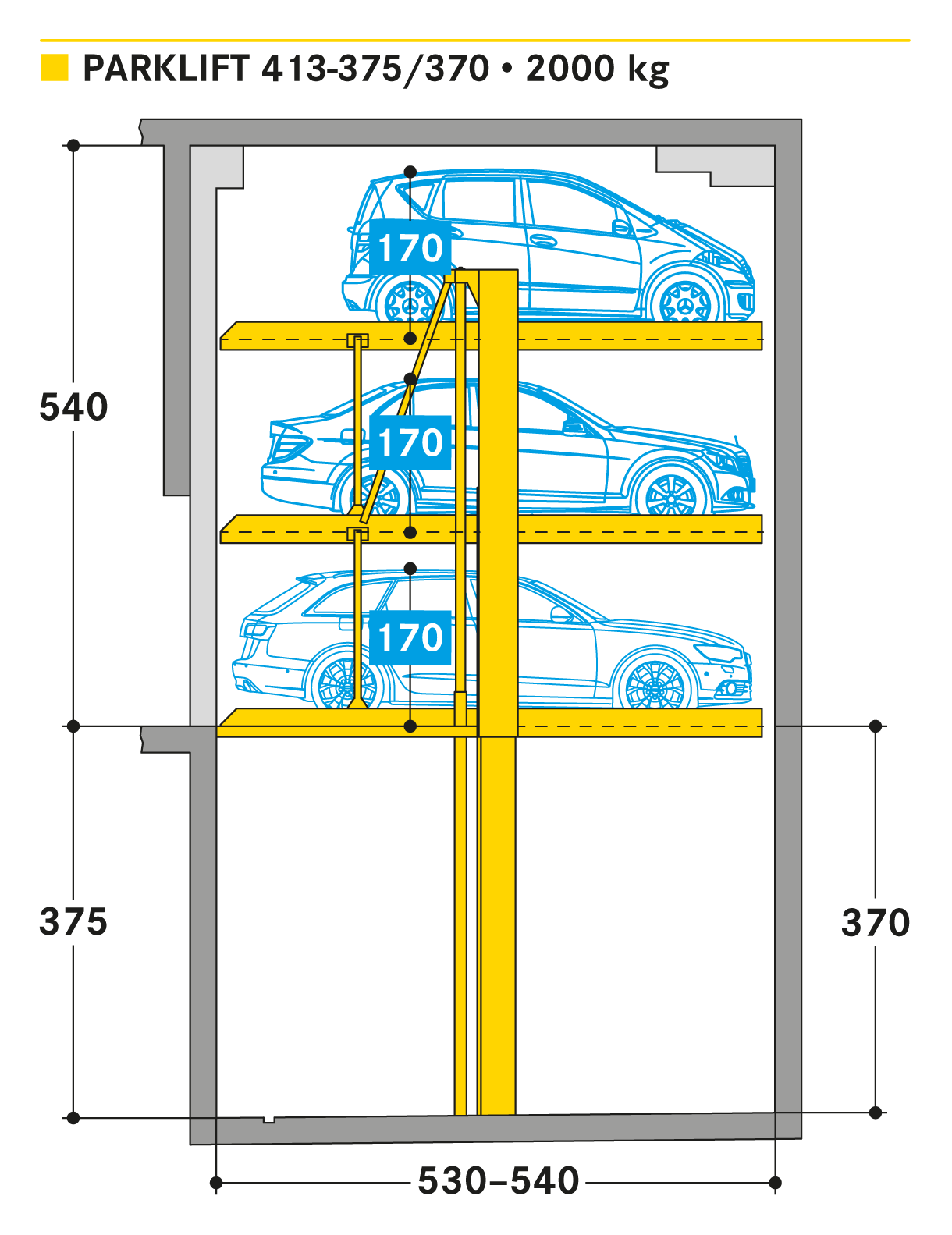 With Parklift 413 three parking places are build-up on one floor level, independently and cost saving.