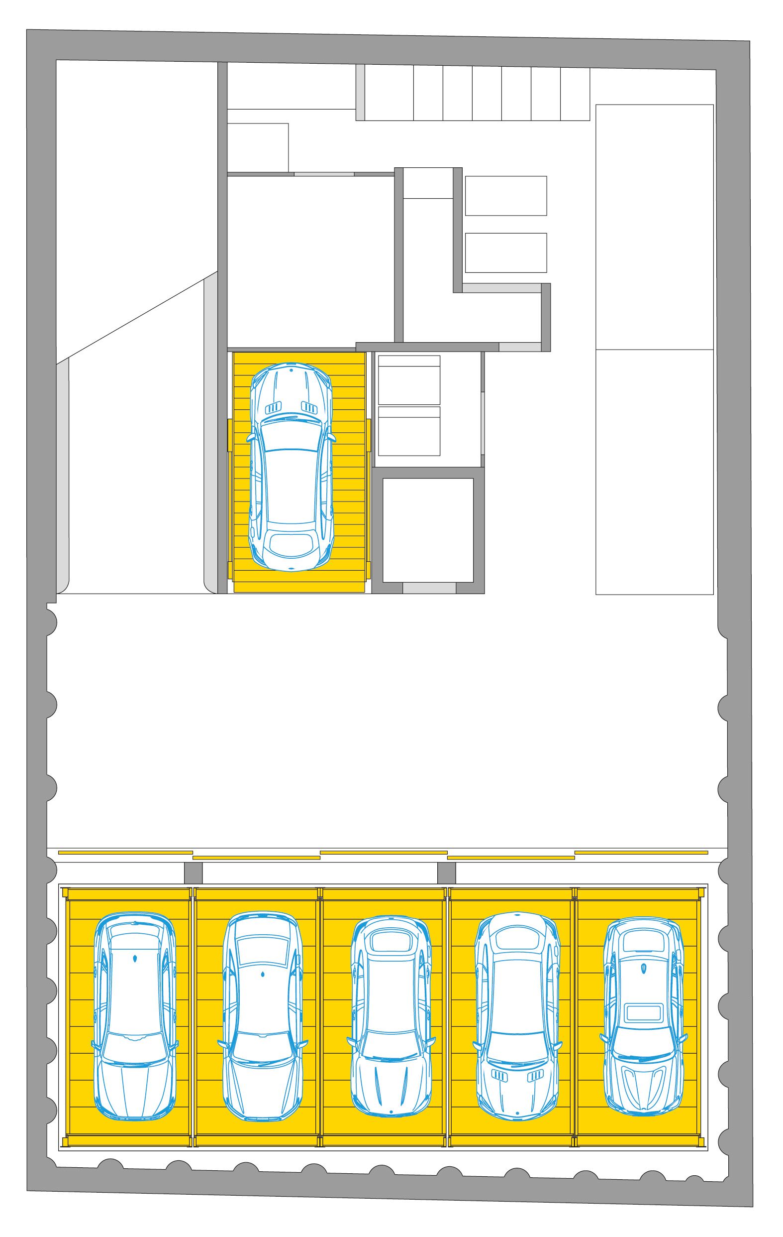 In the Themeda project, a 3-level Combiparker enabled 13 parking spaces to be realised in the space of 5 conventional parking spaces - a huge saving in terms of space and costs!