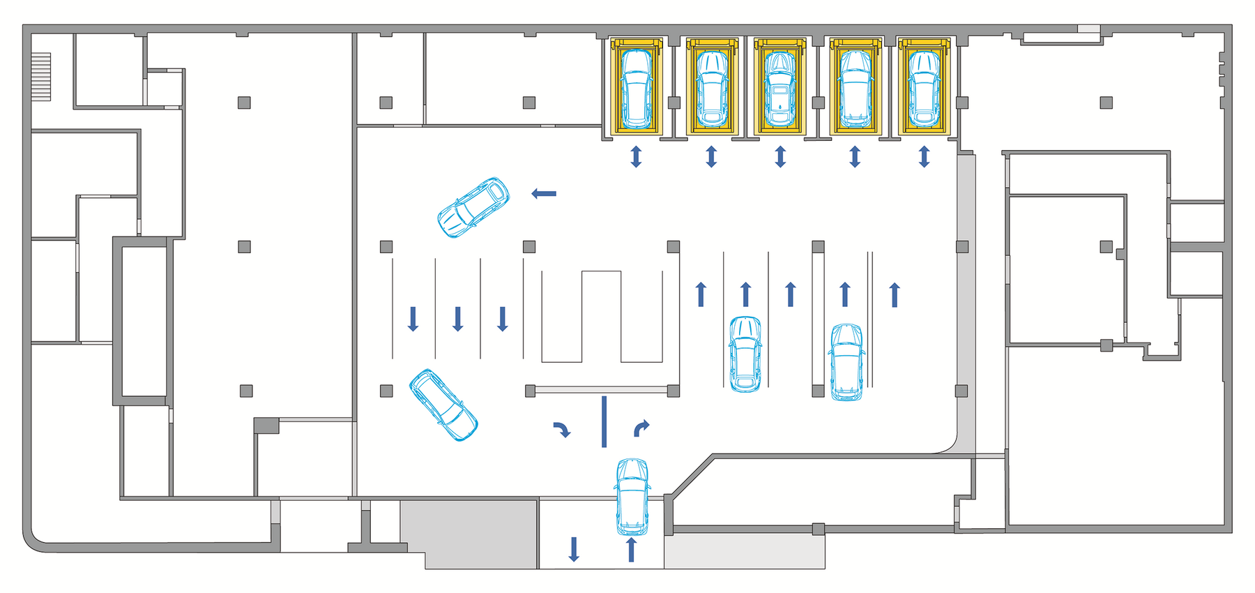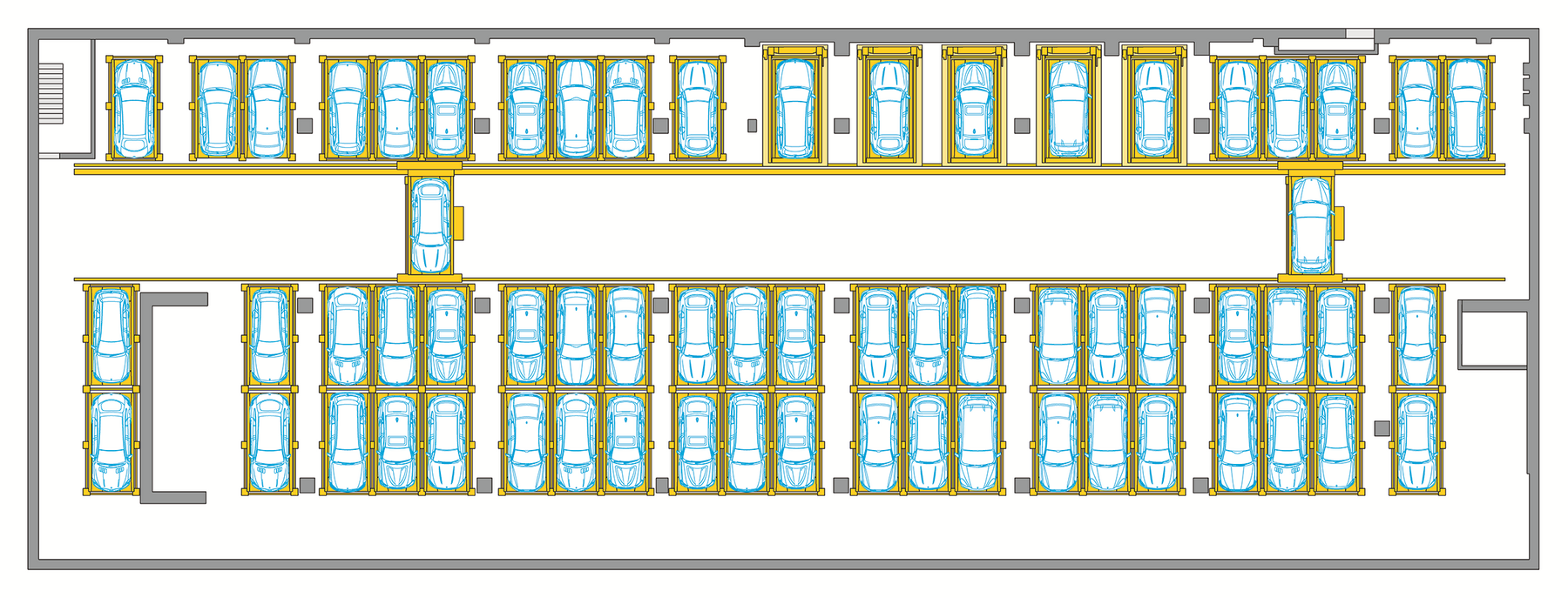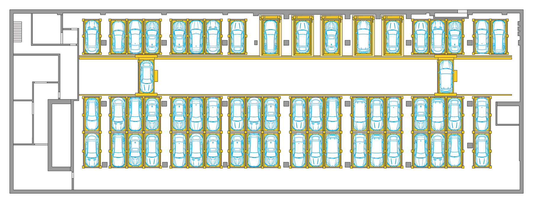 WÖHR's fully automated Multiparker730 car park system was therefore selected to provide the parking spaces required for the extension. The system offers space for 160 vehicles - including electric vehicles!