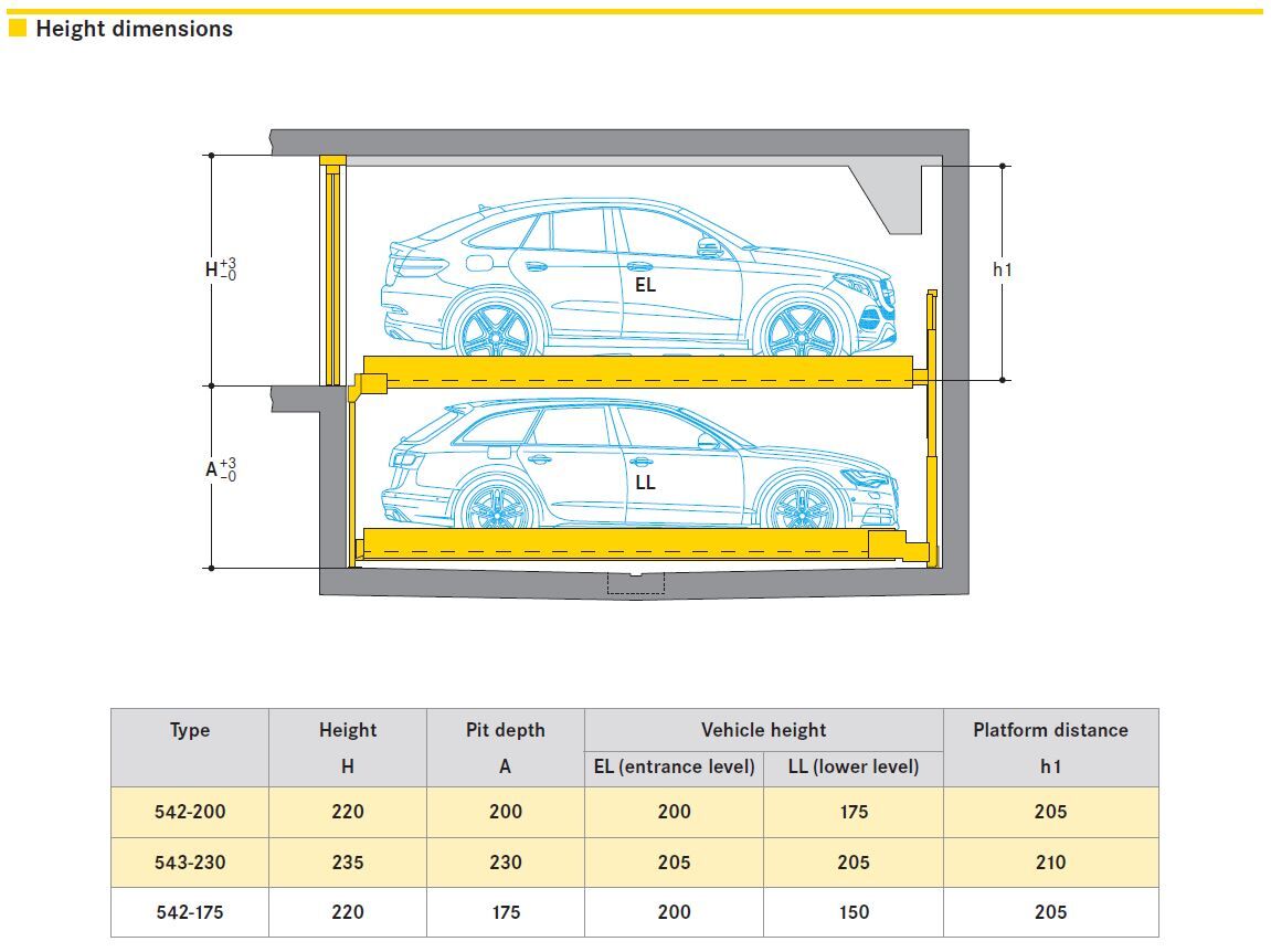 Parcare independentă pe 2 niveluri, unul deasupra celuilalt, cu puț, potrivită atunci când înălțimea liberă este limitată. Cu o înălțime de doar 2,20 m, așa cum este disponibilă în cazul garajelor convenționale, Combilift 542 oferă 2 niveluri de parcare unul peste celălalt. Acest sistem are întotdeauna o platformă în minus la nivelul de intrare. Când se solicită o platformă de la nivelul inferior, platformele de la nivelul superior se vor deplasa lateral până când se crează un spațiu gol în care se ridică platforma corespunzătoare.