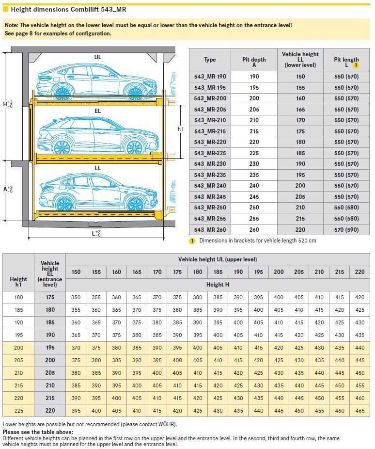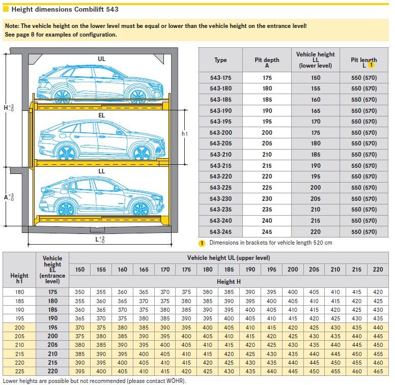 - Toate modelele noi de Combilifturi sunt extrem de versatile și permit realizarea unei noi înălțimi la fiecare 5 cm, pentru a parca autovehicule cu înălțimea de la 150 cm până la 220 cm