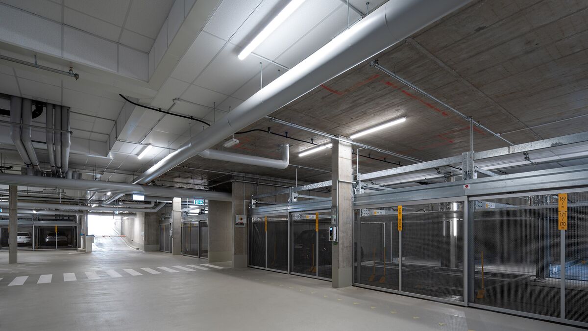 Din totalul de 171 de locuri de parcare din cartier, 124 sunt găzduite de sistemele WÖHR Combilift, variantele 543 și 552, care economisesc spațiu. Repartizate pe 15 sisteme cu diferite dimensiuni ale platformelor, acestea oferă locuitorilor spații de parcare convenabile și eficiente - adaptate optim condițiilor structurale și nevoilor cartierului.