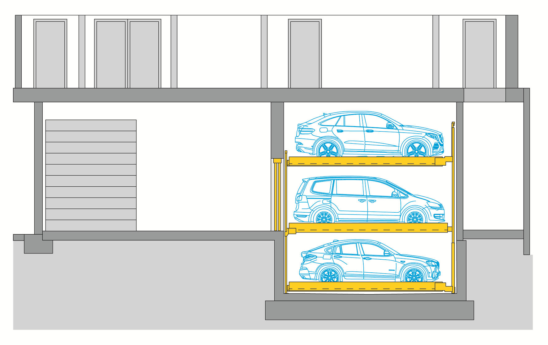 Partenerul nostru Harding Autopark Systems a folosit două sisteme WÖHR Combilift 543 pentru a crea 28 de locuri de parcare în parcarea subterană.